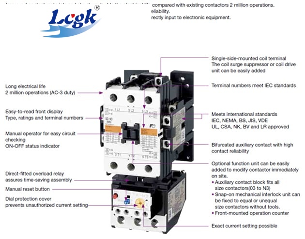 In addition, the FUJI SC-N series contactors employ bifurcated auxiliary contacts which improve contact performance and permit them to be used in conjunction with programmable logic controllers.